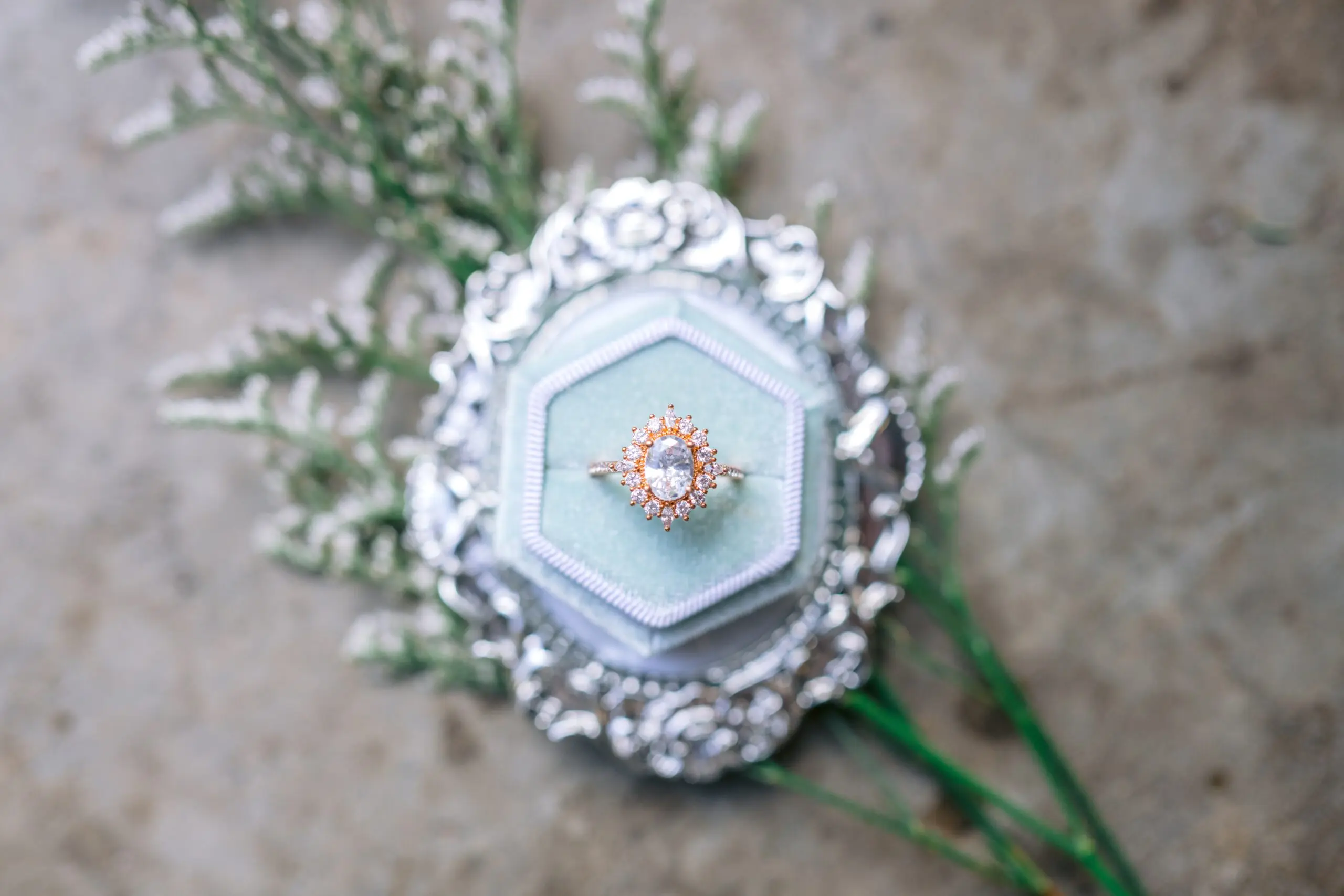 Halo setting – The ring setting creates the illusion of a halo with a larger center diamond surrounded by smaller diamonds. This setting can vary in diamond cuts and shapes can be combined. The halo is designed to draw focus towards the center, enhancing the diamond’s brightness and brilliance. Being a feminine and romantic engagement ring, this style suits individuals with the same characteristics.