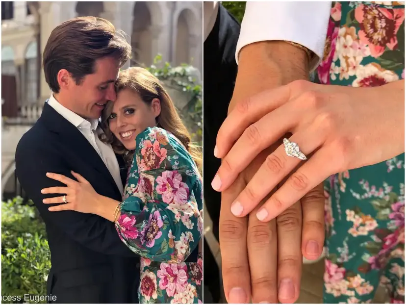Princess Beatrice’s ring is a stunning 3.5-carat round diamond inspired by the Art-Deco design. The ring is also set with tapered baguettes on each side of the centre stone. Edoardo Mapelli Mozzi, her then fiancé, collaborated with designer Shaun Leane on the ring and chose natural diamonds. He understood that only natural diamonds would be suitable for an engagement to a Princess. For him, the natural diamonds represented love and commitment.