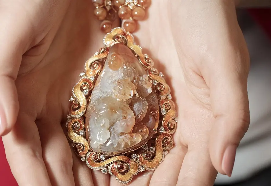 In a stunning example of how diamonds can be used in conjunction with other materials, the Hong Kong-based brand DAWN collaborated with a jade carving artist, an enamellist, and a rope artist to create the Dragon Necklace. This piece is a masterclass in multi-disciplinary artistry, featuring carved orange jade, jade beads, and diamonds.